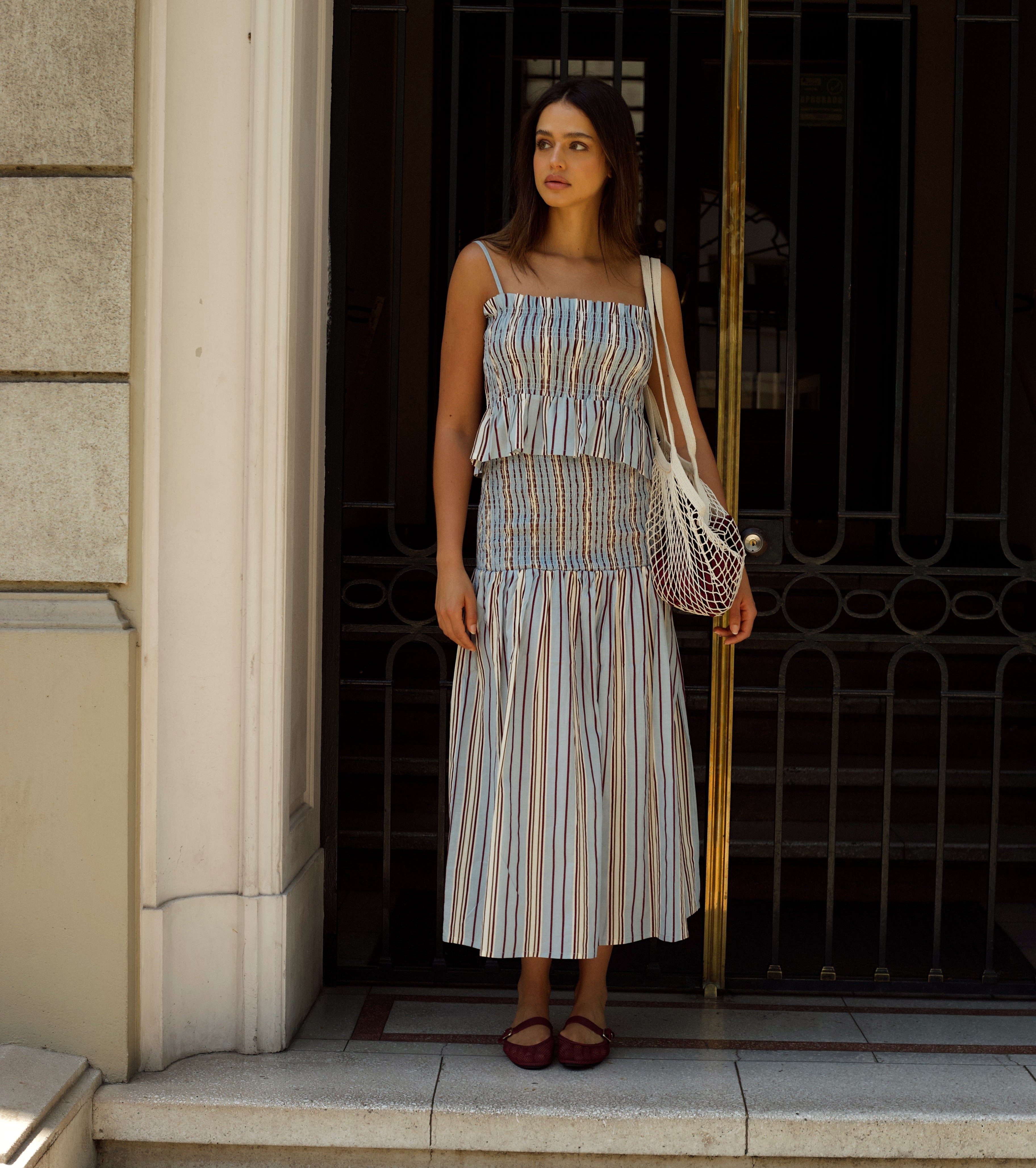 Solène no grita, seduce. No busca llamar la atención, pero nunca pasa desapercibida. Su elegancia es natural, y su fuerza está en los detalles: en una costura perfecta, en un algodón que respira, en un estampado pintado a mano que no volverá a repetirse.