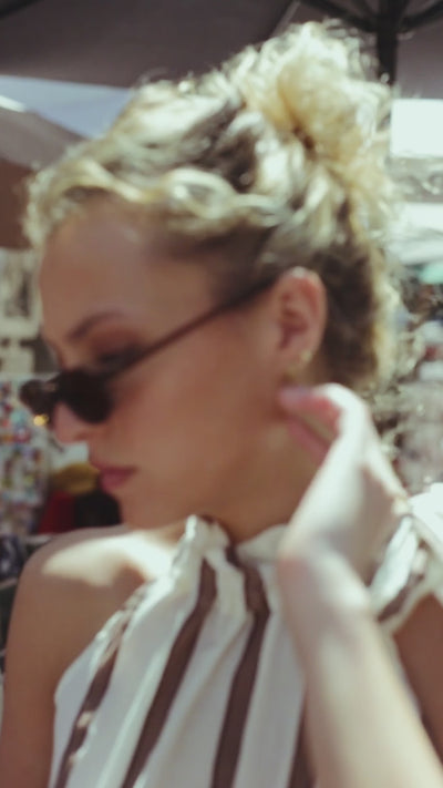 En una mañana de julio, mientras las sombras de las contraventanas bailan sobre un suelo de piedra cálida en un pueblo del sur, nace Solène. Es el retrato de una mujer que se mueve entre lo clásico y lo espontáneo; que camina con sandalias de cuero por un mercado español al amanecer y toma café en silencio en una terraza parisina al atardecer.