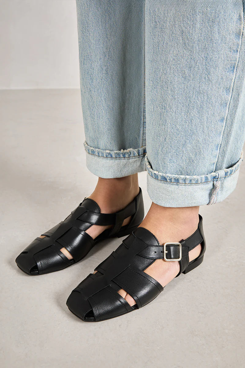 Sandalias ajustables con hebilla. Confeccionadas en cuero 100% y suela prefabricada antideslizante. Tallaje normal.